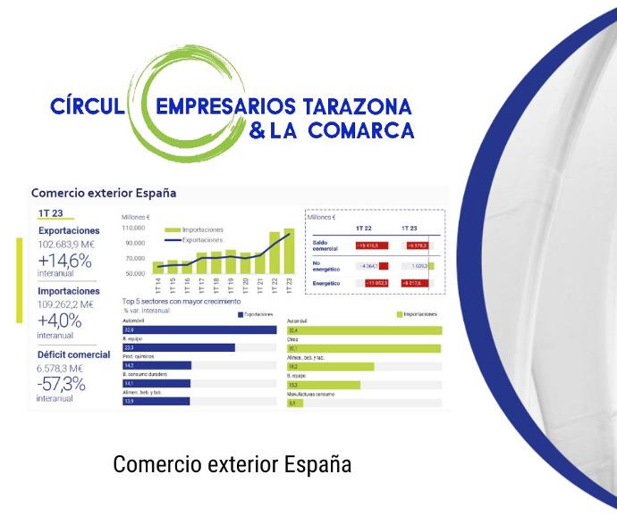 Según los últimos datos facilitados por el INE relativos al primer trimestre de este 2023, las exportaciones españolas de bienes subieron un 14,6% interanual hasta los 102.683,9 millones de euros, mientras que las importaciones ascendieron un 4,0% interanual hasta los 109.262,2 millones de euros.